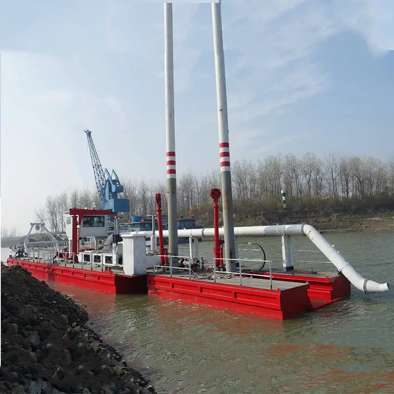 Nasza firma pogłębiarka ssąca do czyszczenia rzek jest samobieżną lub niesamobieżną, przenośną pogłębiarką ssącą do cięcia rzek. Kadłub ma konstrukcję demontowalną i skrzynkową. Jego typ demontażu można łatwo zmontować w miejscu pracy i odpowiednio transportować drogą, koleją i kontenerem, wygodny w montażu i przemieszczaniu miejsca pracy z jednego do drugiego. Układ napędowy może być zaprojektowany do układu elektrycznego lub układu napędowego silnika wysokoprężnego zgodnie z wymaganiami klientów. Wyposażenie pogłębiarki ssącej do oczyszczania rzeki to miechy: urządzenie przesuwowe, urządzenie podnoszące drabinę tnącą, spednie i dźwig pokładowy.